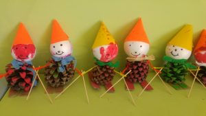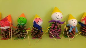 Paint: Paint your pinecone and your skis. You can optionally assemble the head and hat as well when you paint.